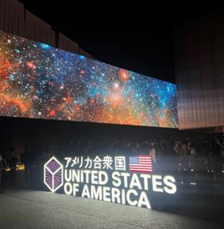 最後に訪れたアメリカ館は、待機列がまるでディズニーランドのアトラクションのように凝っていて、並んでいる時間ですら楽しむことができました。展示の最後のエリアでは、ロケットに乗って宇宙空間を旅する映像体験があり、まるで自分が宇宙飛行士になったような気分で非常にわくわくしました。また、55年前に万博で話題となった「月の石」が実際に展示されており、映像の中で見た宇宙が急に現実のものとして感じられました。
