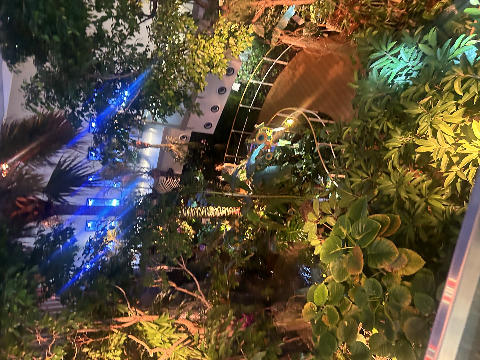 インドネシア館では、入り口でスタッフの方々が笑顔で声をかけてくれ、お祭りのような賑やかさだった。伝統衣装に身を包んだダンサーのパフォーマンスやスタッフによる陽気な歌声が響き、野外フェスのようだった。インドネシアの国民性や空気感を感じることができた。一歩中に入ると、外の陽気さとは対照的に、ジャングルのような静けさが広がっていた。照明を落とした展示空間には、実際にインドネシアから持ってきた植物が生い茂り、湿った空気と土の匂いが漂っていた。自然とともに生きるインドネシアの文化が、五感を通して伝わってくるようなパビリオンだった。展示を見ているうちに、自分もその国の空気を少しだけ吸っているような不思議な感覚になった。